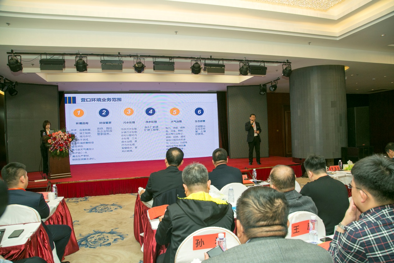 營口市環(huán)境工程開發(fā)有限公司劉德敏總經(jīng)理在會上做《環(huán)保一站式服務(wù)平臺》報告。公司今年在傳統(tǒng)優(yōu)勢領(lǐng)域精工細作,在新興領(lǐng)域主動創(chuàng)新,捷報頻傳。同時,介紹了公司的業(yè)務(wù)、優(yōu)勢及未來規(guī)劃。